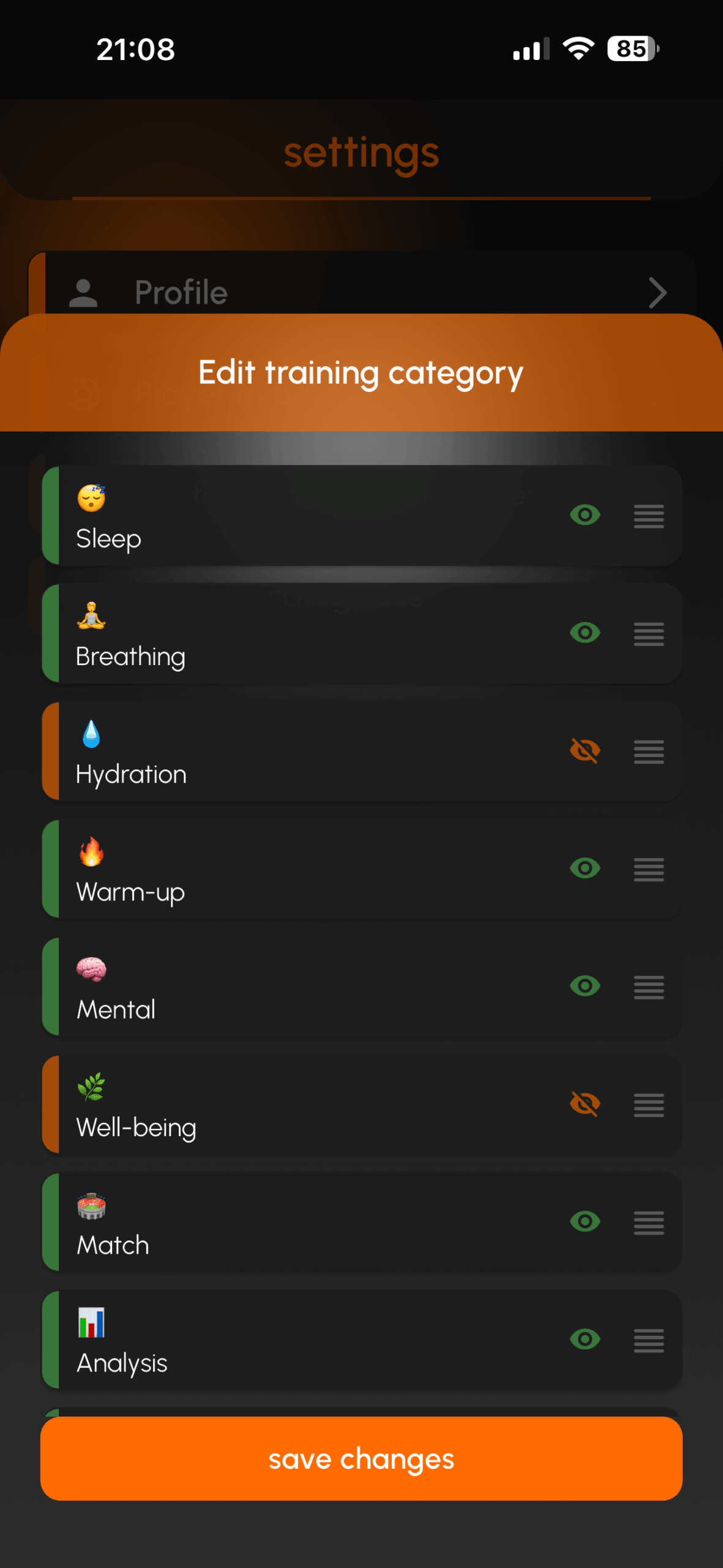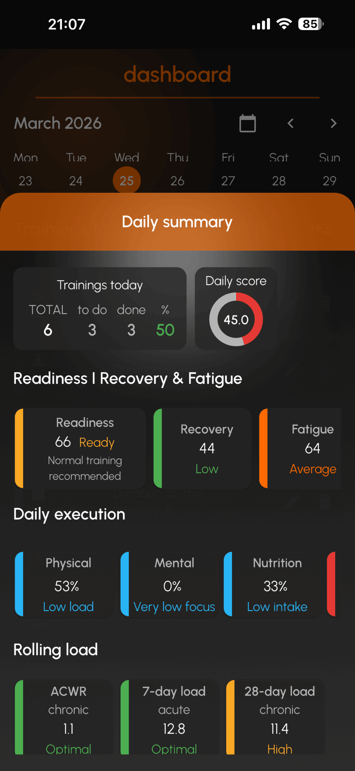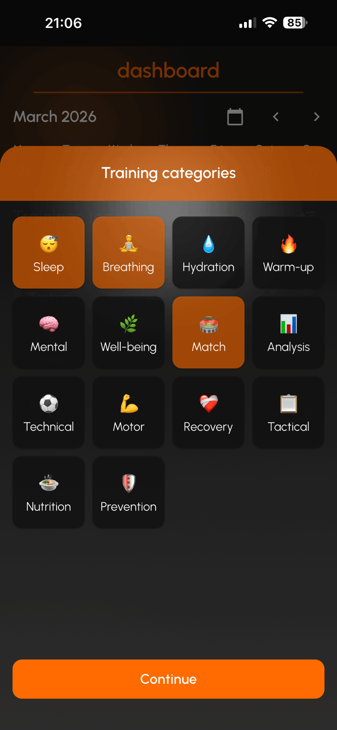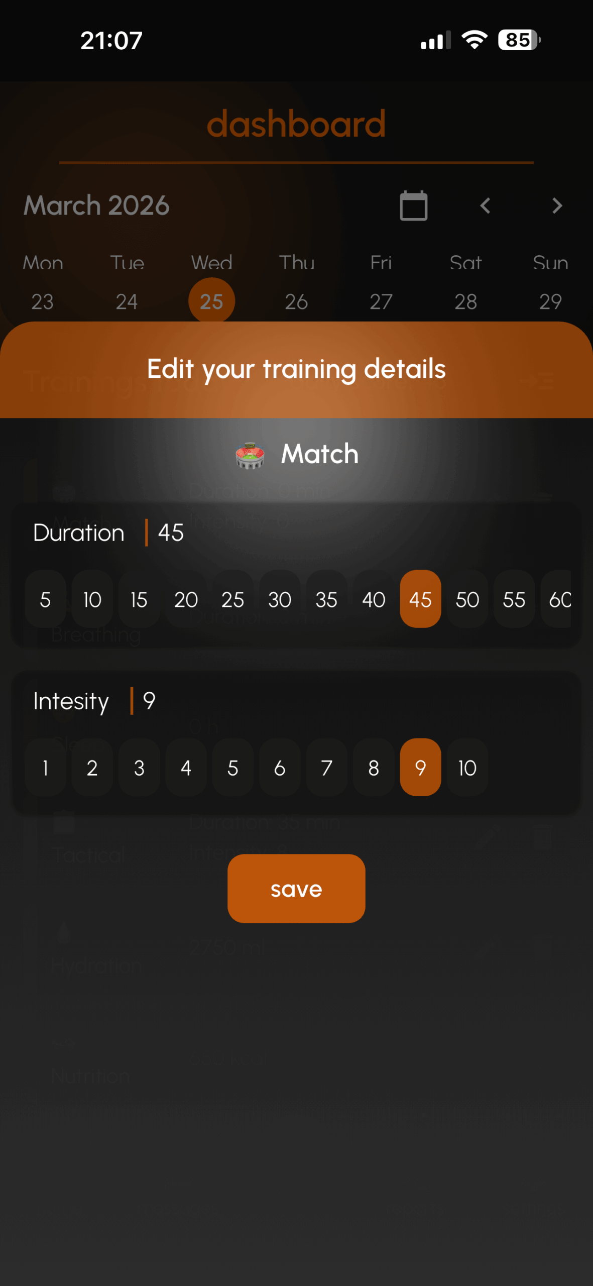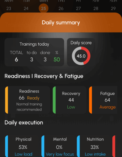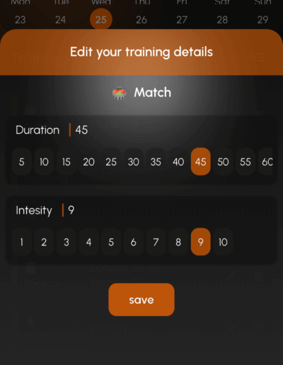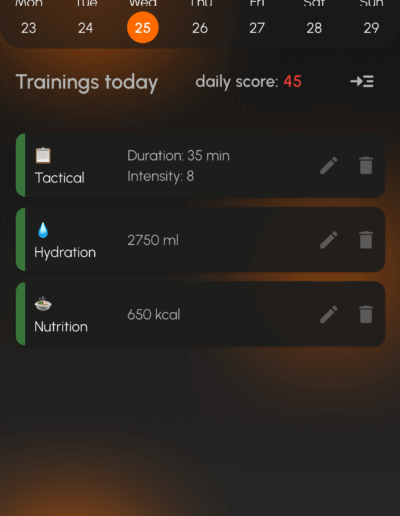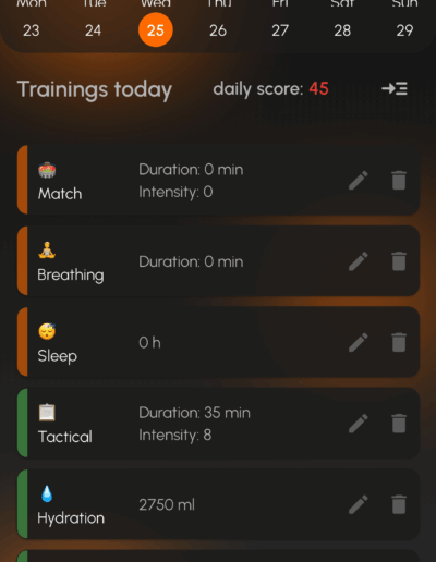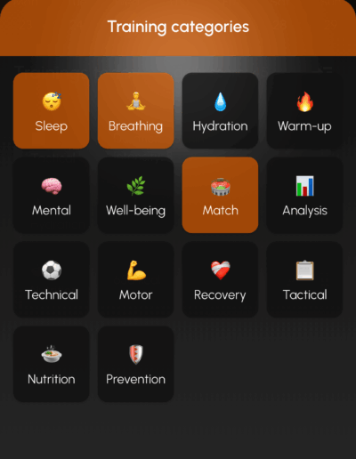 The app allows players to log daily training sessions, monitor recovery indicators, and build consistent training habits that support long-term development in football.